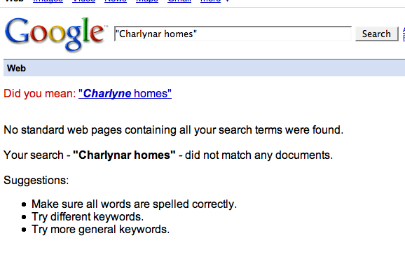 Google “Charlynar homes.” Today, there are no results in Google for this search. Soon, likely Google will find whether Charlynar Homes is a good or bad builder. I’ll post an update in a couple of days.
