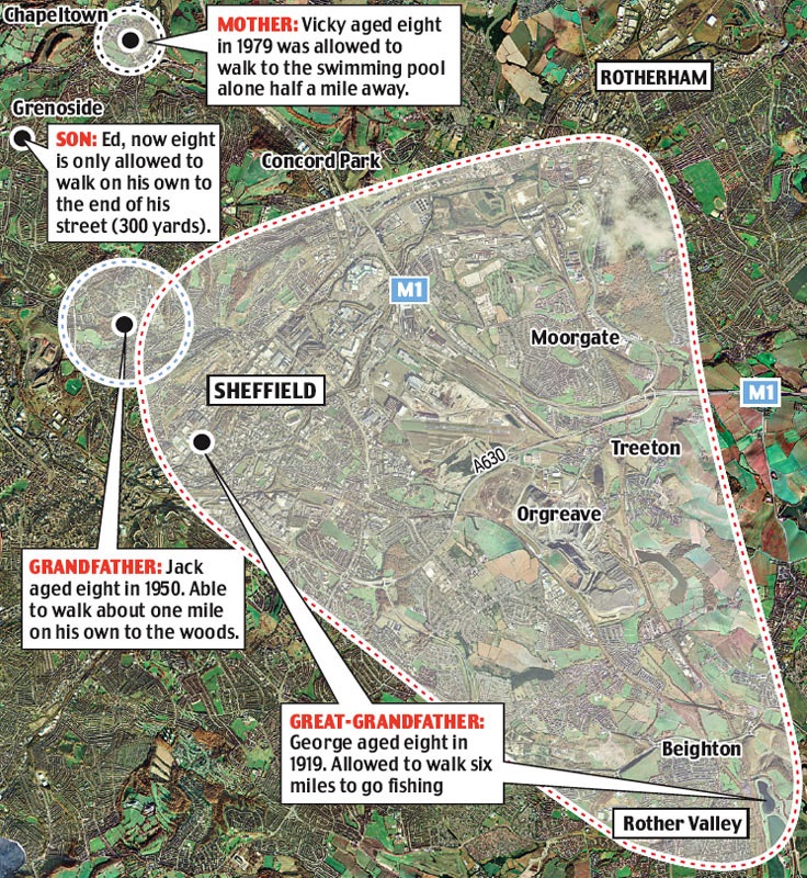 The above image struck me when I first saw it a couple years ago. I grew up on nearly 70 acres, and we went everywhere. So much has changed since I was a kid … at least the perception of things has changed. I’m not sure whether society is less “safe” than it was, but the perception of society has certainly changed.
