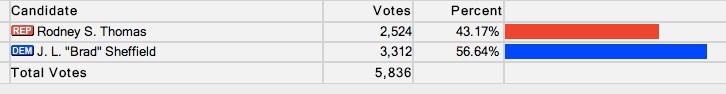 The Albemarle County elections last night brought about a resounding change on the Albemarle County Supervisors. Gone are Rodney Thomas and Duane Snow; in are Brad Sheffield and Liz Palmer. For what it’s worth, the Democrats won and the Republicans lost.