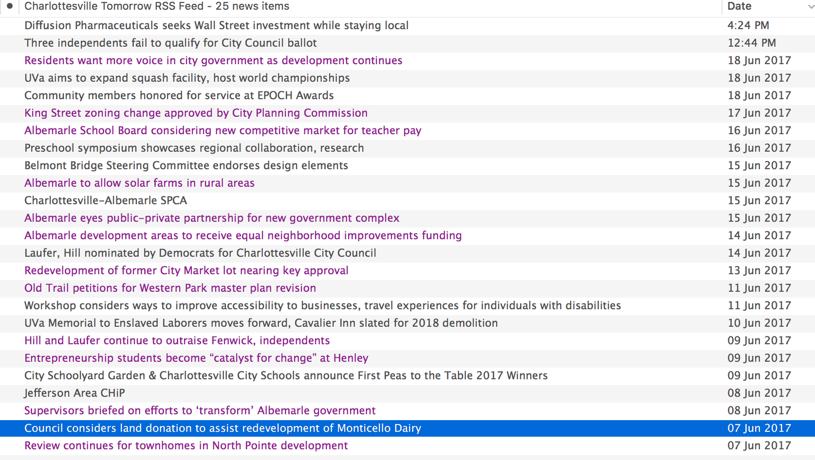 Charlottesville Tomorrow put out a lot of good, useful, relevant stories – relevant to me, as I live here, and relevant to how I practice real estate (as in, I need to know more than my clients!)